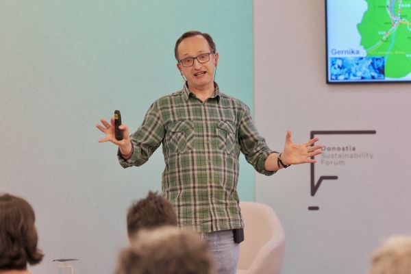 La principal línea de investigación de Ibon Cancio Uriarte es analizar cómo influye la contaminación en la diferenciación sexual de los peces. En su conferencia en DSF, antes de entrar en este tema, ofreció explicaciones detalladas y fáciles de entender sobre la reproducción, dejando claras las siguientes ideas: Charles Darwin es un dios, por crear la teoría de la evolución; los machos son caros desde el punto de vista de la especie, y el sexo biológico es variado. Con los ejemplos que utilizó para explicar estas ideas, hizo reir al público, al tiempo que proporcionó el contexto para entender explicaciones más técnicas.